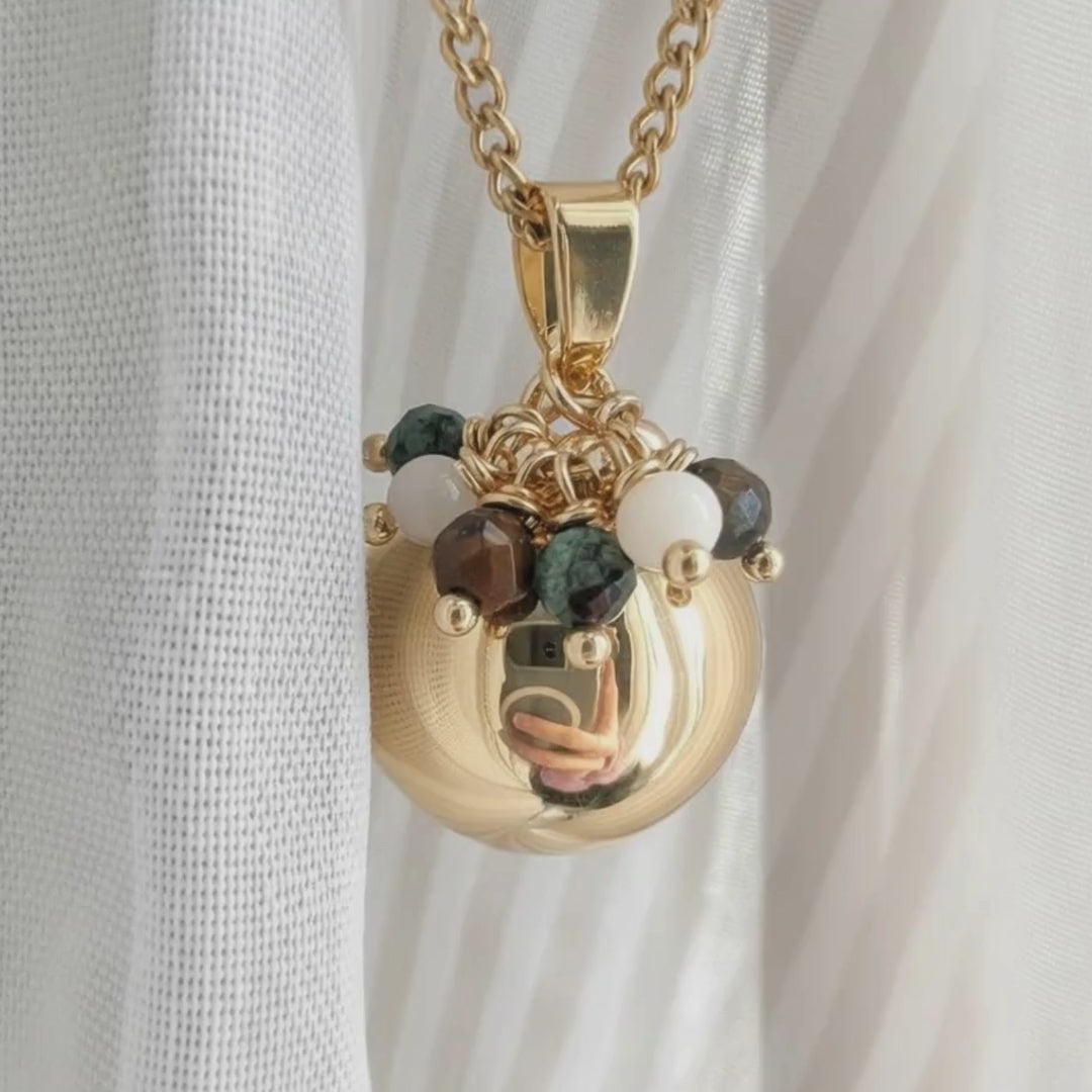 Bola de grossesse or avec 4 pendentifs en pierres naturelles